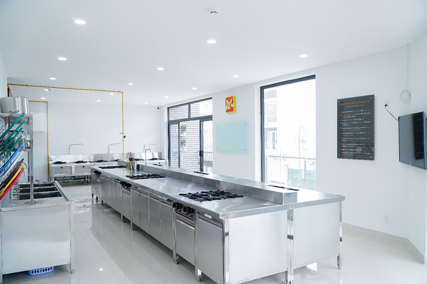 - Học viên được học từ kiến thức tổng quan đến cách sử dụng dao, chảo cùng các phương pháp chế biến món ăn hiện đại, để sau khóa học có thể tự làm chủ không gian bếp.
